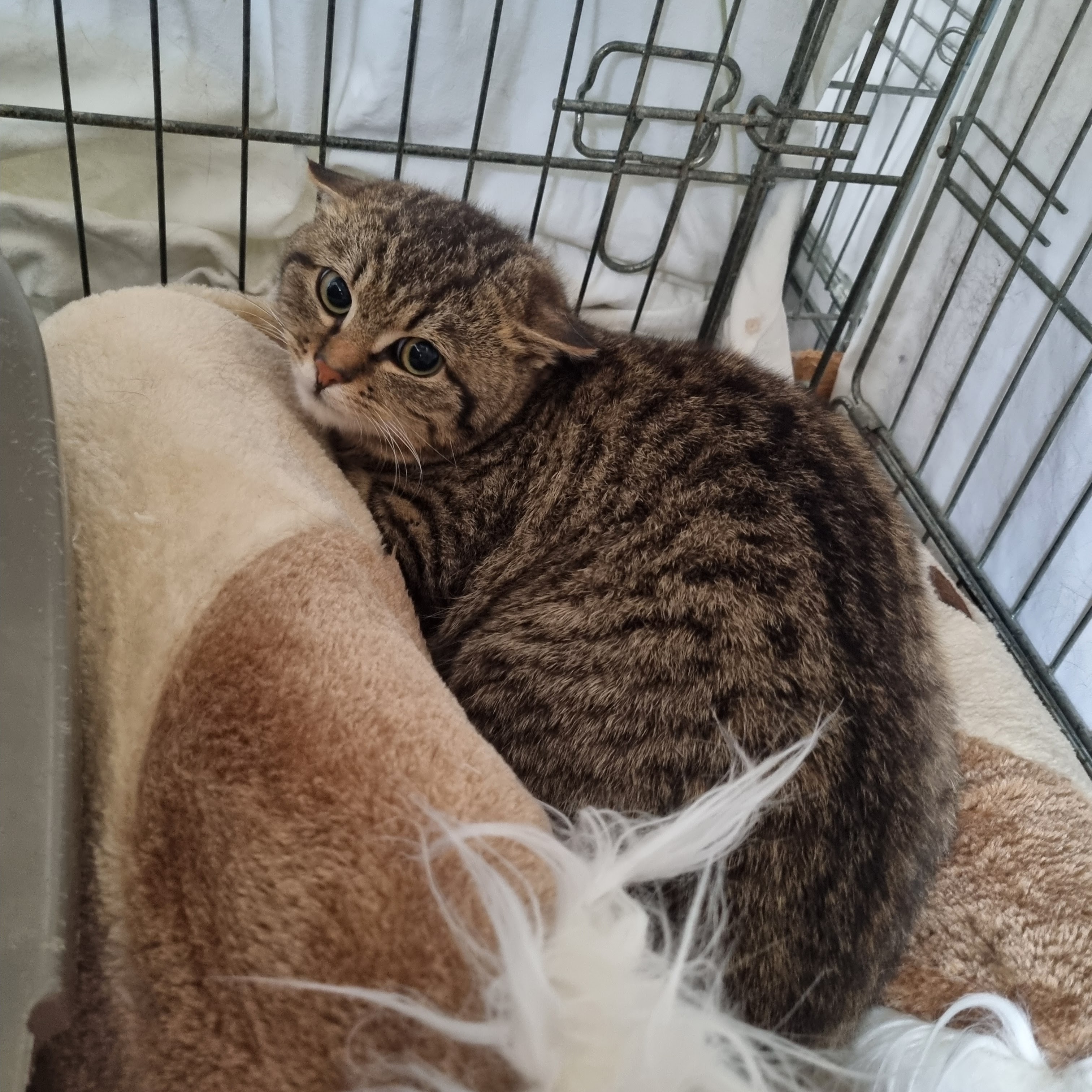 Emánek je asi čtyřměsíční mourkované kotě, které jsme přijali 10. dubna 2026 u správní budovy Psychiatrické léčebny Bohnice. Zatím čeká na veterinární vyšetření a teprve poté bude k dispozici pro nový domov.